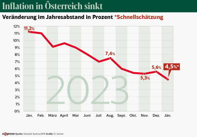 Grund für den Rückgang waren weniger stark steigende Energiepreise, insbesondere die Strompreise hatten einen dämpfenden Effekt. Auch in vielen anderen Bereichen seien die Preise weniger kräftig angestiegen als zuletzt, sagte Statistik-Austria-Generaldirektor Tobias Thomas am Donnerstag laut einer Aussendung. “Seit dem Höchststand vor einem Jahr konnte die Inflationsrate bereits mehr als halbiert werden. Für 2024 erwarten die Expertinnen und Experten eine weitere Halbierung im Vergleich zu 2023”, sagte Finanzminister Magnus Brunner (ÖVP).