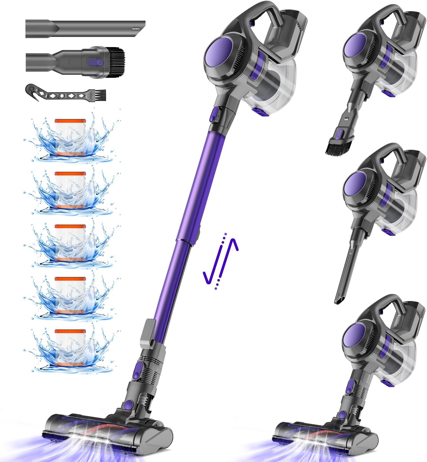 Vactidy Blitz V8Pro Akku Staubsauger, 25KPa Staubsauger Kabellos bis zu 40min Laufzeit, Akkustaubsauger mit Aufgerüstete Bodenbürste, Selbsttragend Kabelloser Staubsauger Tierhaare für Hartboden