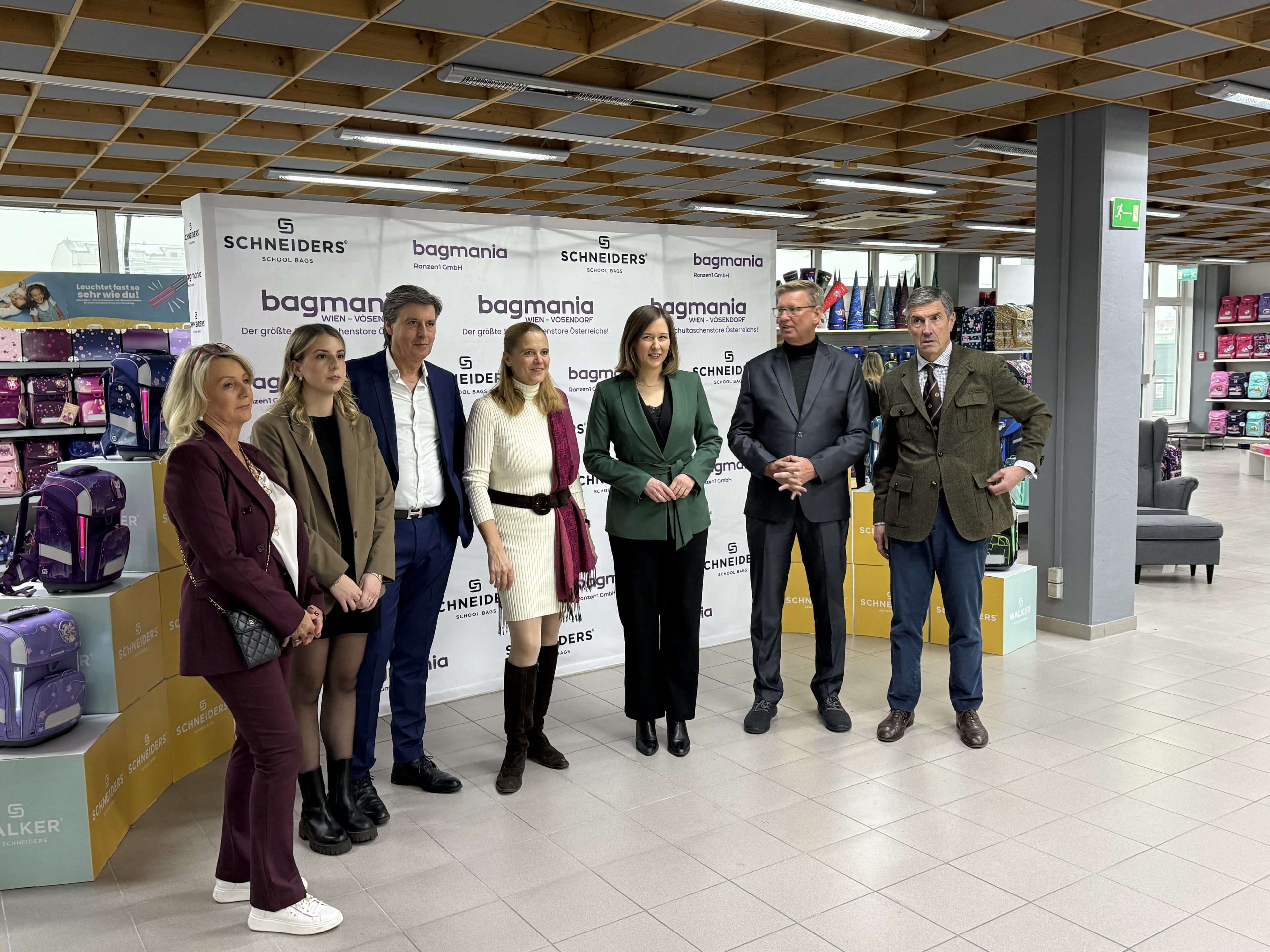 Unter den Gästen befand sich auch Familienministerin Claudia Bauer (vormals Plakolm), die in einer kurzen Ansprache die Bedeutung solcher Fachgeschäfte betonte – für viele Schüler gehört die Schultasche zu den wichtigsten Begleitern im Alltag.