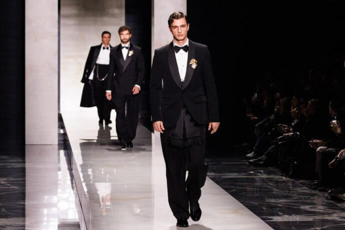 Ripped Jeans, Samtblazer und Military-Jacken aus luxuriösen Materialien, ergänzt durch Strick, Fell und die markentypische Opulenz. So könnte man die gelungene Herrenkollektion von Dolce & Gabbana zusammenfassen. Eine Kollektion, die Männlichkeit im Hier und Jetzt präsentiert und selbstbewusst in Szene setzt.