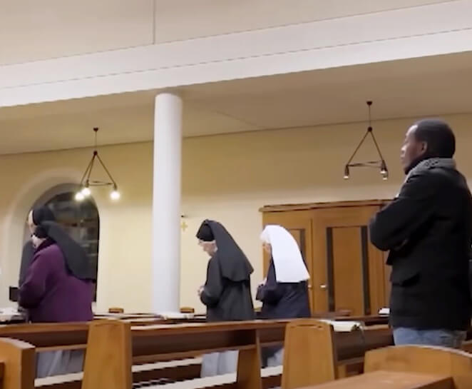 Im weiteren Verlauf kommt das Gespräch auf Partnerschaft und Kinder. Die Journalistin fragt, ob Schwester Marie-Salome es vermisse, eine Familie zu gründen. Die Nonne antwortet, dass sie es manchmal vermisse, aber in dem aufgehe, was sie lebe. Auch unter den Schwestern werde über solche Themen gesprochen.