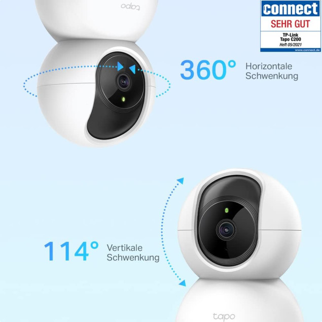 TP-Link Tapo C200 360°-WLAN-Überwachungskamera für den Innenbereich, FHD 1080P, Nachtsicht, Bewegungserkennung, Zwei-Wege-Audio, kompatibel mit Alexa und Google Assistant, für Babys/Haustiere