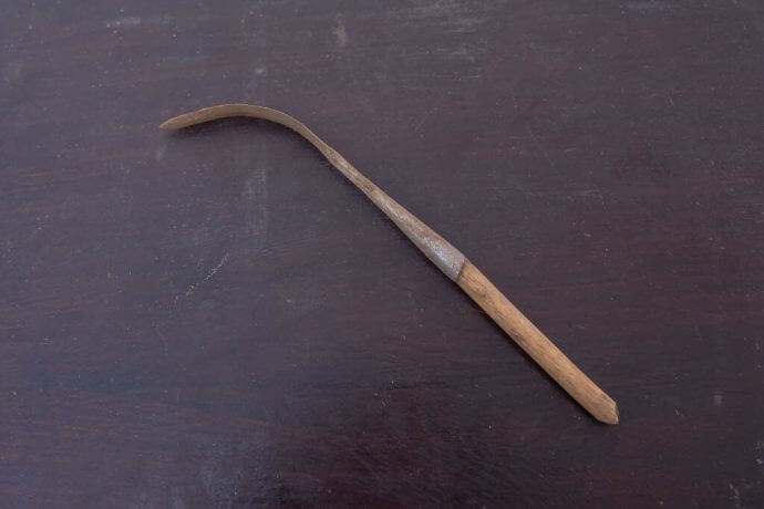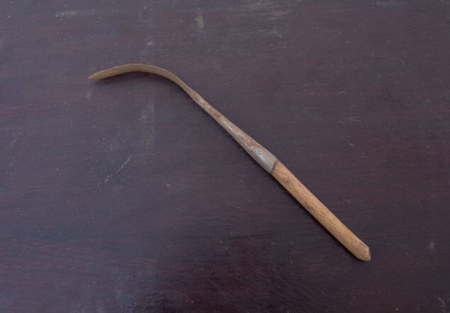 Ein Werkzeug, das zur Durchführung der weiblichen Genitalverstümmelung (FGM) an jungen Mädchen in Karamoja, Uganda, verwendet wird. Es wird häufig aus Pfeilspitzen hergestellt. Weibliche Genitalverstümmelung ist in Uganda seit 2010 gesetzlich verboten, doch Hilfsorganisationen und die Polizei berichten, dass diese Praxis weiterhin von Stämmen im Nordosten des Landes ausgeübt wird, darunter die Pokot, Sebei, Tepeth und Kadama.GETTYIMAGES/Sally Hayden
