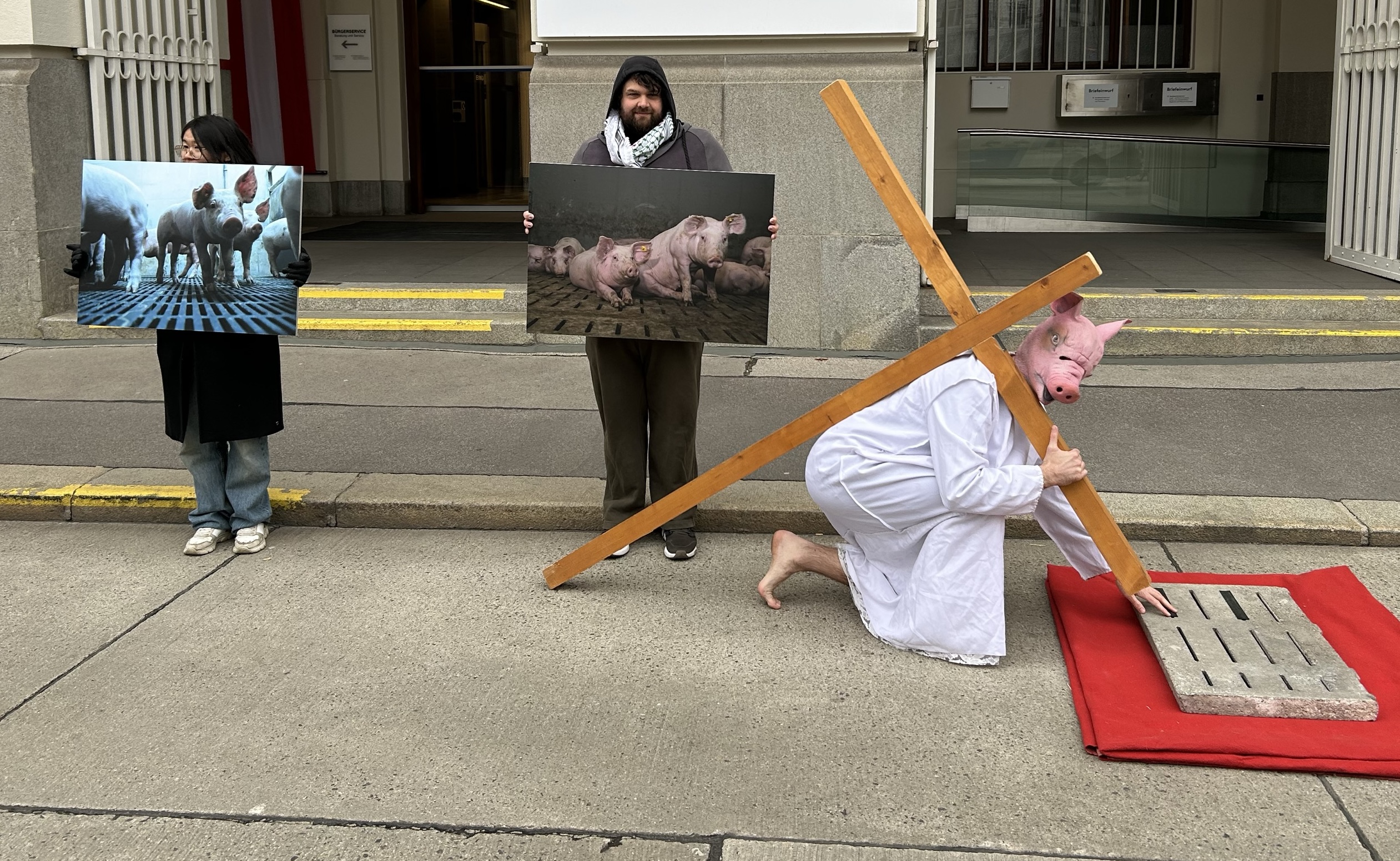 Karfreitags-Eklat in Wien: Tierschützer stellen vor dem Landwirtschaftsministerium einen „Kreuzweg der Schweine“ nach. Ein empörter exxpress-Leser zeigt sich fassungslos über die Aktion ausgerechnet an einem christlichen Feiertag.