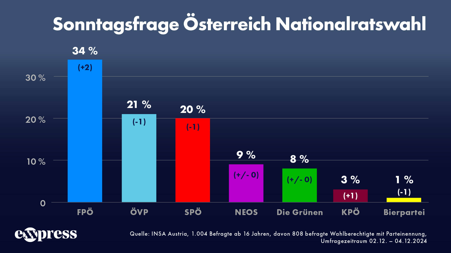 Damit bauen die Freiheitlichen ihren Vorsprung auf die Konkurrenz deutlich aus. Die ÖVP sackt mit 21 Prozent ab, während die SPÖ mit 20 Prozent ebenfalls Boden verliert. Ein Fiasko für die ehemals dominierenden Volksparteien!