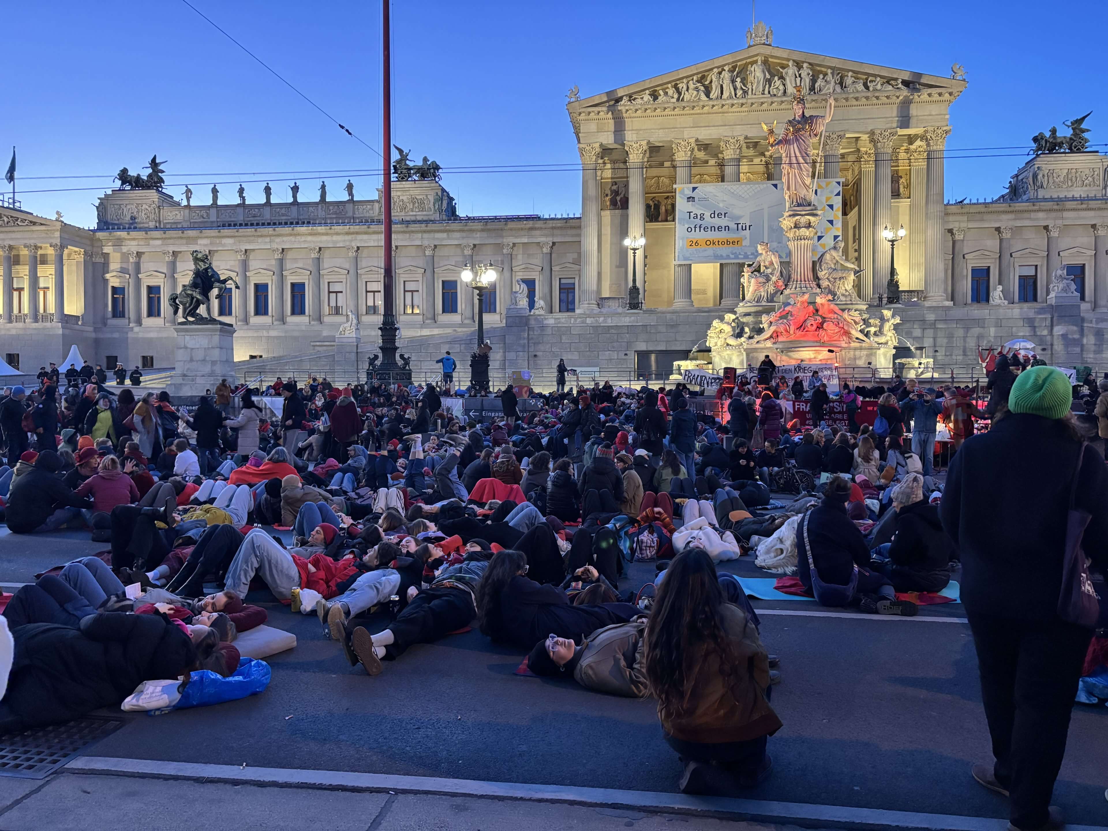 Sie wollten gegen das Patriarchat „liegenbleiben“ und endeten mit Punsch, Parolen und Selbstinszenierung. Hunderte Teilnehmer trafen sich am Freitagabend beim „Frauen*Streik“ vor dem Parlament, unterstützt von Organisationen aus dem österreichischen NGO-Komplex.