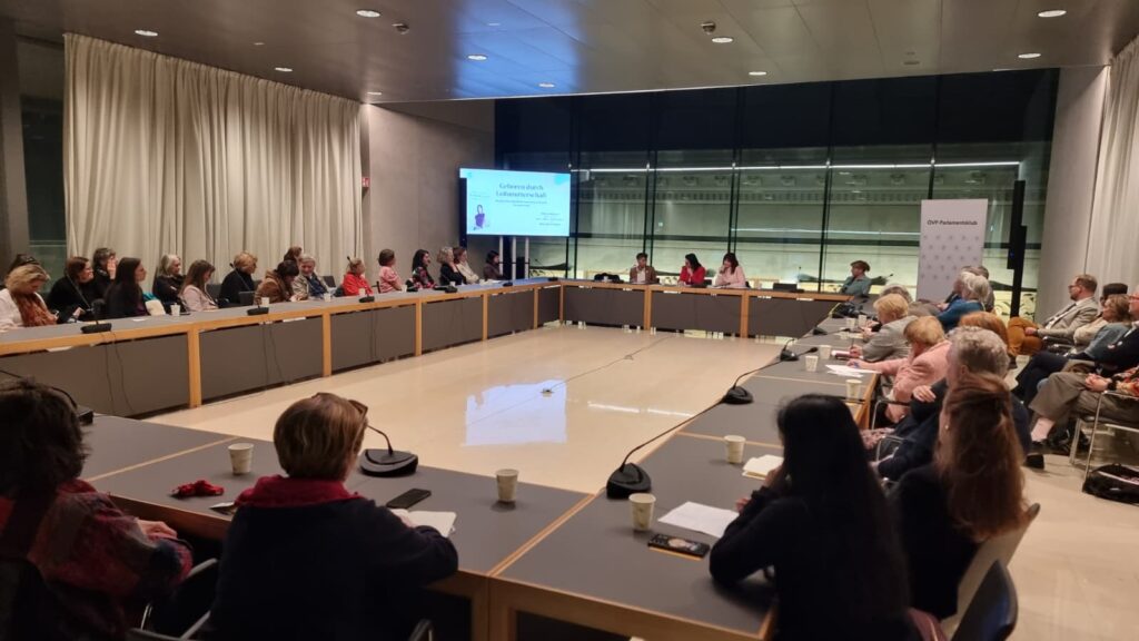 Ein Raum im dritten Stock des Parlaments, Lokal 7 – gleich neben dem Café Kelsen. Durch die Glasfronten fällt der Blick auf die Nationalbibliothek. Ein schöner Ort, beinahe ruhig. Doch an diesem Abend geht es um ein Thema, das viele im Raum bewegen wird. Vor allem Frauen sind gekommen – von junge Studentinnen bis zu Pensionistinnen, es waren alle Altersklassen vertreten.