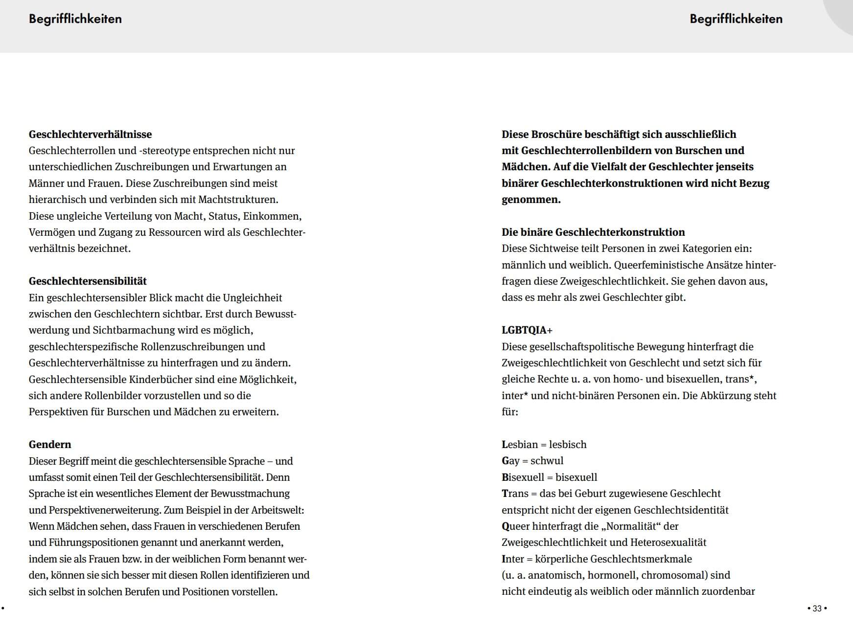 Zu Ende dürfen auch nicht Begriffserklärungen zu Gender und LGBTQIA+ fehlen.