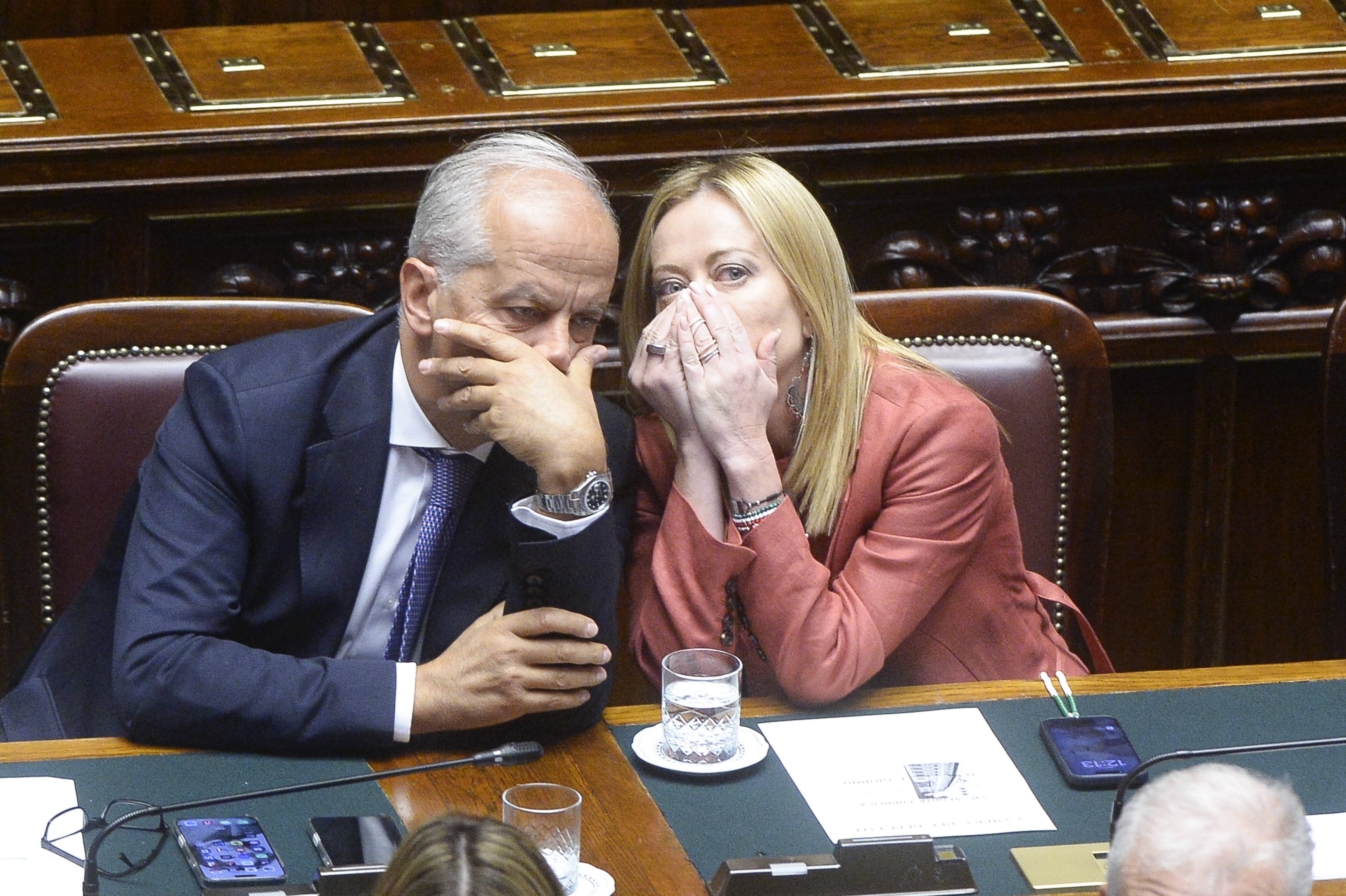 Der italienische Innenminister Matteo Piantedos und Ministerpräsidentin Giorgia MeloniIMAGO/Avalon.red