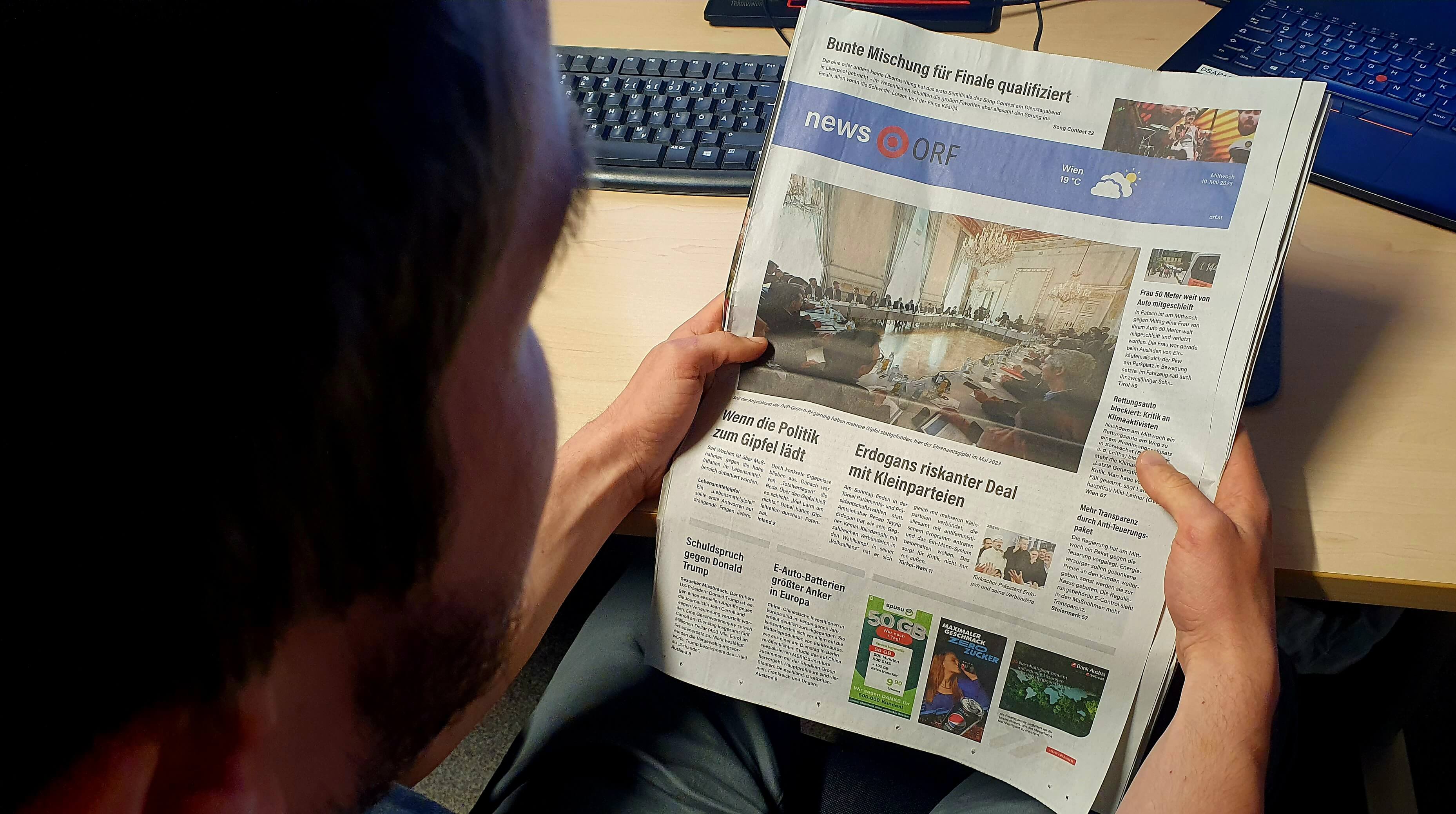 Soweit das Gesetz. In Wirklichkeit ist ORF.at aber längst tageszeitungsähnlich: Der VÖZ ließ die blaue Seite an einem „durchschnittlich ereignisreichen Tag“ auf Zeitungspapier ausdrucken. Das Ergebnis: Die so produzierte „ORF-Tageszeitung“ umfasste mehr als 70 Seiten – mehr als eine durchschnittliche private Print-Tageszeitung. Die gesetzlichen Vorgaben werden damit laut Experten der Interessensverbände in der Praxis nicht eingehalten.
