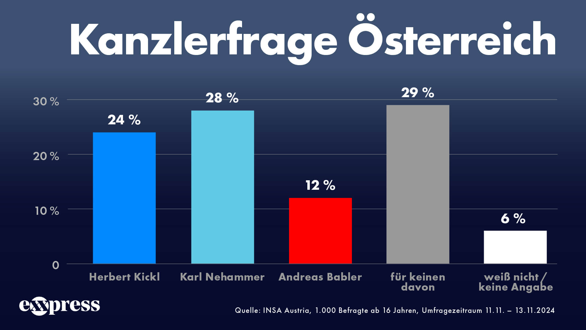 Im November lag Nehammer noch bei 28 Prozent.