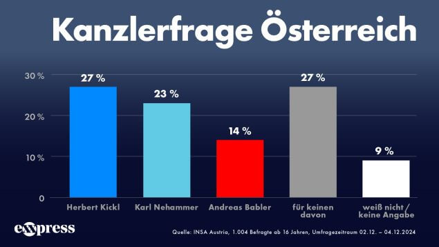 Zum Vergleich: Noch vor einem Monat sah die Situation anders aus. In der November-Umfrage hätten nur 24 Prozent Herbert Kickl ihre Stimme gegeben, während 28 Prozent den amtierenden Kanzler Karl Nehammer bevorzugten.