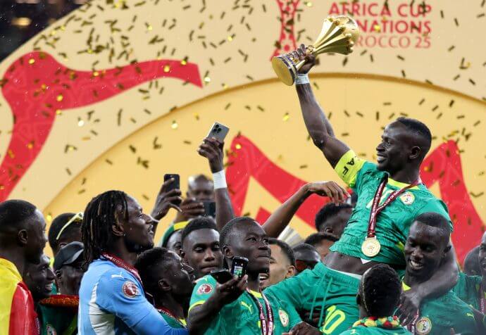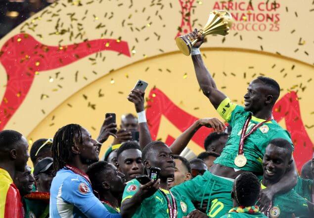 Senegals Nationalteam hat zum zweiten Mal den Afrika-Cup gewonnen. In einem kuriosen Finale in Rabat setzten sich die “Löwen der Teranga” am Sonntag gegen Gastgeber Marokko nach Verlängerung mit 1:0 durch.