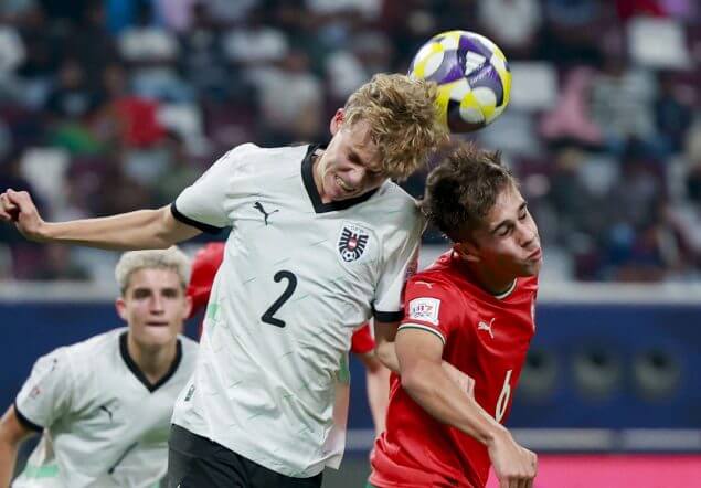 Der aktuelle U17-Europameister Portugal bestimmte im Khalifa International Stadium in der ersten Halbzeit klar das Spielgeschehen und setzte das ÖFB-Team immer wieder mit gefährlichen Offensivaktionen unter Druck. Glück hatte Torhüter Daniel Posch bei einem missglückten Ausflug, dass der anschließende Treffer wegen Foulspiels aberkannt wurde (13.).