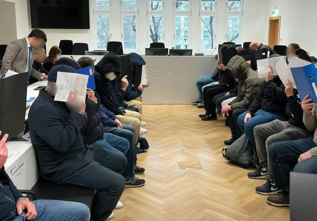 Die meisten Angeklagten waren recht medienscheu, als sie nach und nach vor dem Verhandlungssaal eintrafen. Sie hielten sich Mappen und Schnellhefter vors Gesicht, um nicht erkannt zu werden, als Fotografen und Kamerateams ihrer Arbeit nachgingen. Auch FFP-2-Masken kamen – mutmaßlich nicht im Zusammenhang mit SARS-CoV-2 – zum Einsatz. Ein Angeklagter erschien mit 32-minütiger Verspätung, wofür er sich entschuldigte.